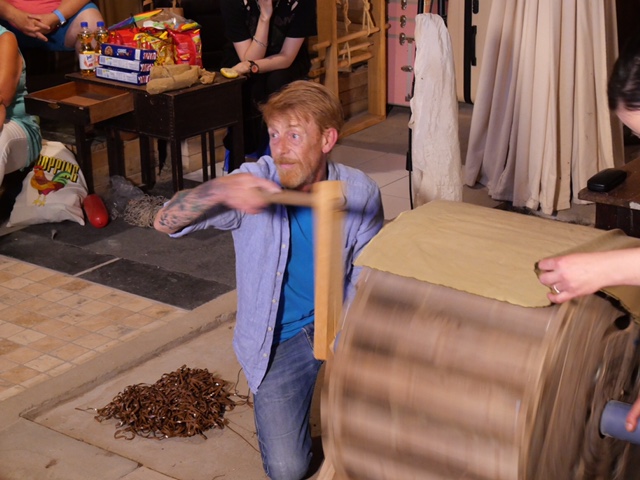 Fruits and vegetables are mainly used for human body sounds. For the most part, foley artists use a wide range of props to recreate sounds. Barnaby’s 2000-square-foot warehouse studio is a one-stop shop. Any object can be found – or recreated. “It’s very rare that an object sounds like itself. Many things in the world make similar noises, you just have to find the right props to recreate a specific sound,” he says. Among thousands of objects are real weapons – machine guns, pistols, axes, swords – alongside car parts, stationery… Plus many drawers filled with medical gear, animal accessories, police equipment or even Edwardian tea cups used in Downton Abbey. All quite bulky compared to sex scenes, where all Barnaby needs to do is slap his arm and kiss the back of his hand.
