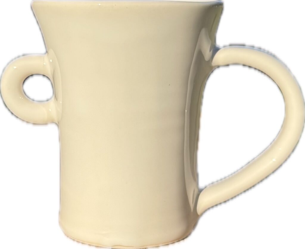 This mug was designed thanks to numerous conversations with occupational therapists, who told her their clients needed a second handle, but couldn’t necessarily hold it. This design addressed the need for an extra hand rest without having to hold a second handle.